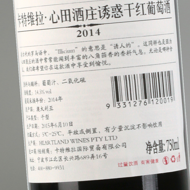 卡特维拉~心田酒庄诱惑干红