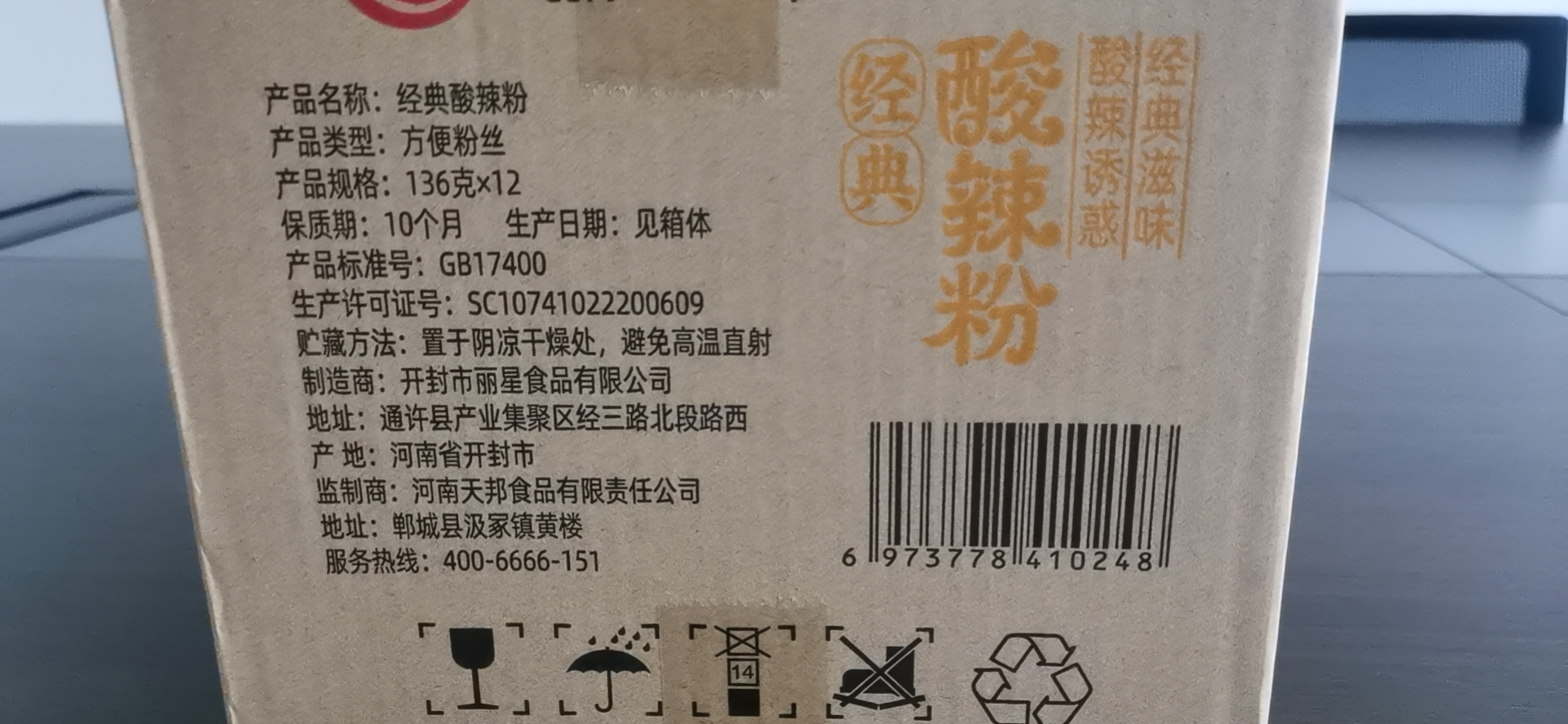 豫言 经典酸辣粉136g*12桶