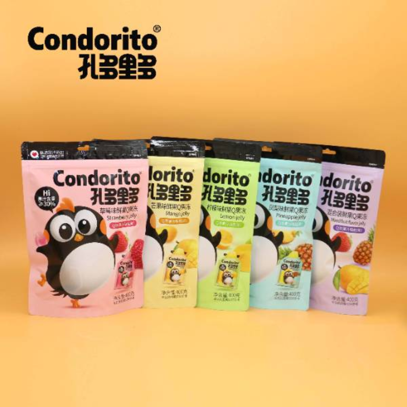 ②不同于传统果冻,此产品为小袋包装,开口的独特设计干净又卫生,环保又健康;