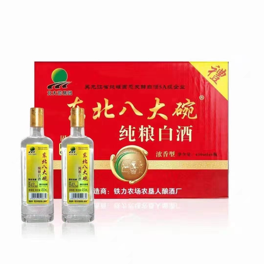 北大荒集团•东北八大碗纯粮白酒纯粮固态发酵,主打中高端光瓶酒主流价位,争做“优质、高性价比、大众”的白酒产品,谋求以品质驱动市场运作。北大荒集团•东北八大碗纯粮白酒清香纯正,醇甜柔和,自然协调,余味爽净。