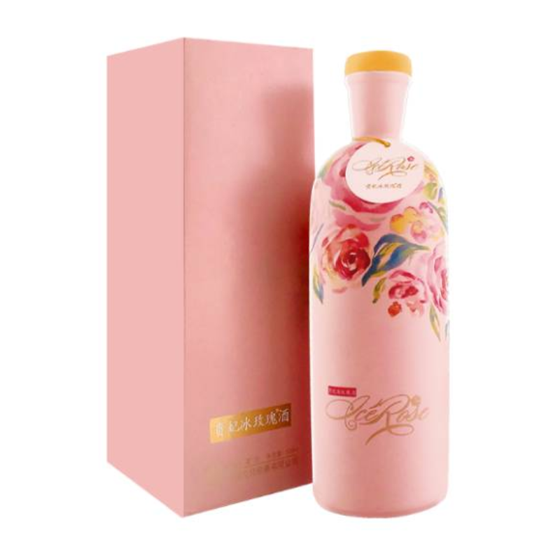 原料采用新鲜重瓣玫瑰花朵、纯高粱基酒、冰糖酿制而成,口感更舒爽,给人清新怡人的味觉体验。贵妃冰玫瑰荣获第三届全国头部光瓶酒领袖大会“创意新品”称号。