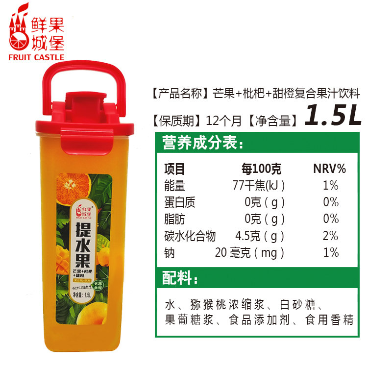 鲜果城堡提水果果汁饮料(芒果+枇杷+甜橙味)1.5L