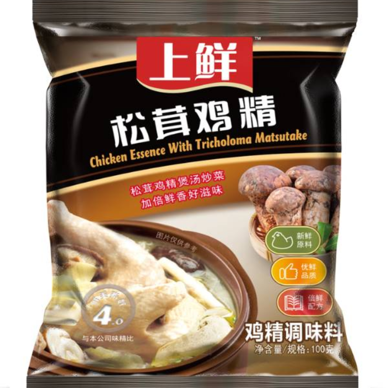 品在原材料选择上,严格精选生鲜动植物原料作为风味基质。为菜肴加入鲜美鸡肉风味,真实再现鸡汤美味,味料同源、口感纯正,安心提鲜;在工艺技术上,上鲜每道工序优中选优,有二道超细粉碎,使鲜味分子充分释放。有鲜味胶囊技术,把鲜味物质包埋起来。有鲜味缓释技术,使煲汤及火锅鲜味持续释放。有微孔造粒技术,能在菜或汤中快速溶解;上鲜鸡精适用炒菜、煲汤、火锅、点心等各类烹饪场景中,让您更轻松驾驭烹饪,使菜品更鲜香、色净味纯、诱人开胃。