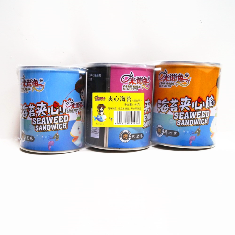 连云港亚创食品有限公司旗下夹心海苔袋装250克,口味有芝麻味、巴旦木味、炒米味、花生味、南瓜子味等,口感香酥脆爽,是母婴、商超、微商等线下实体店的休闲海味零食佳品。