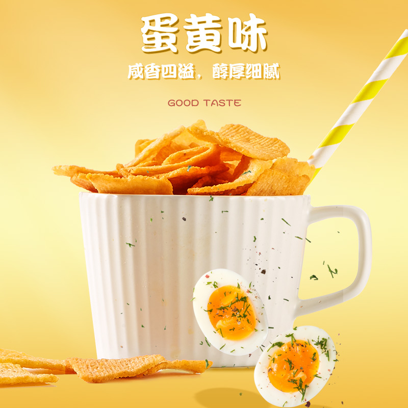 本品分别有花椒味,虾肉味,烤肉味,蛋黄味四个口味,口感浓郁美味。