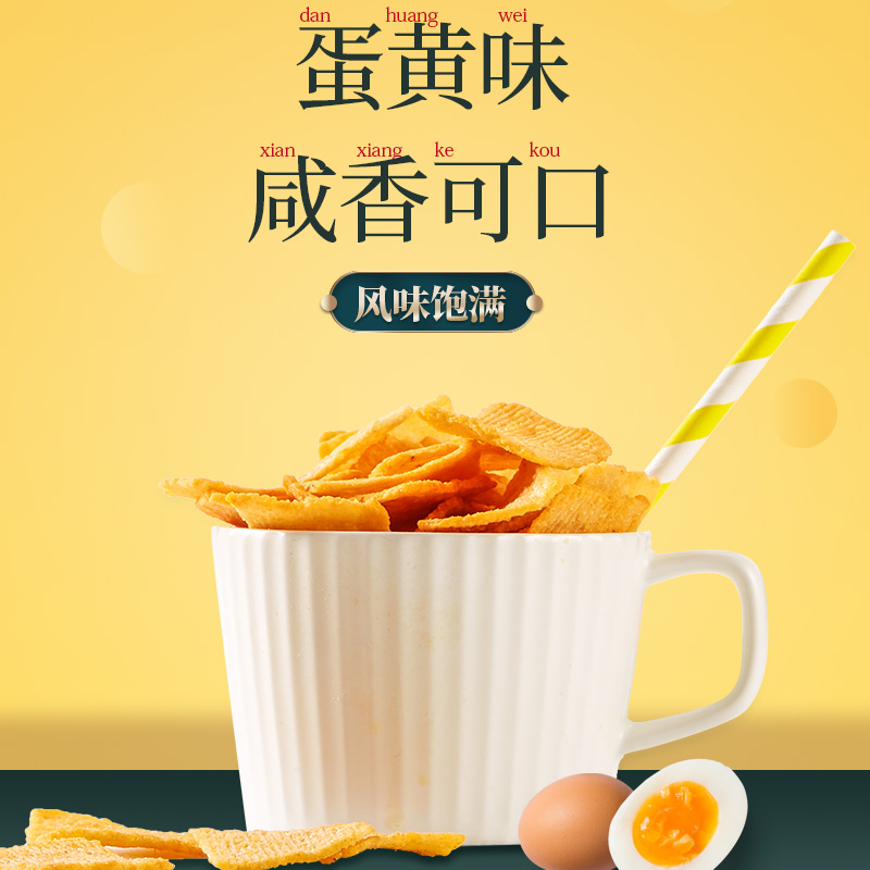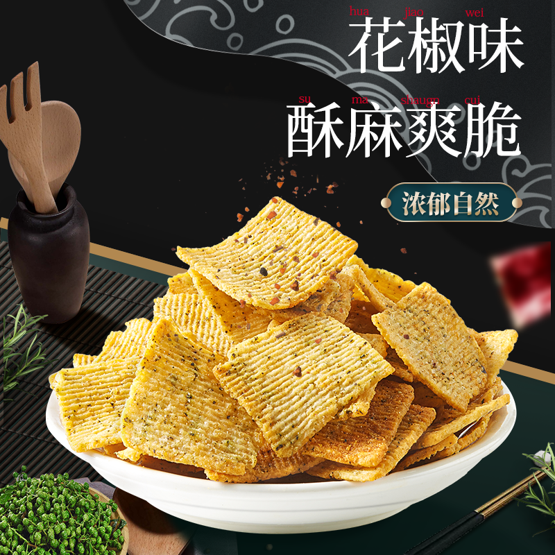 本品分别有花椒味,虾肉味,烤肉味,蛋黄味,四个口味,口感浓郁美味。