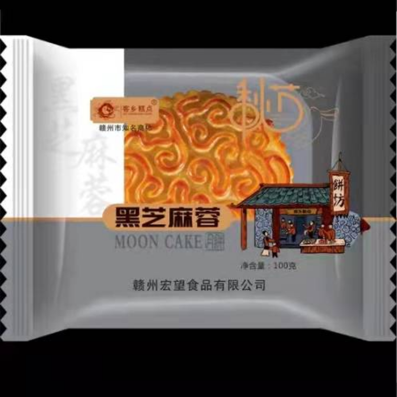 黑芝麻蓉月饼:采用优质黑芝麻,配料考究、皮薄馅多、味美可口