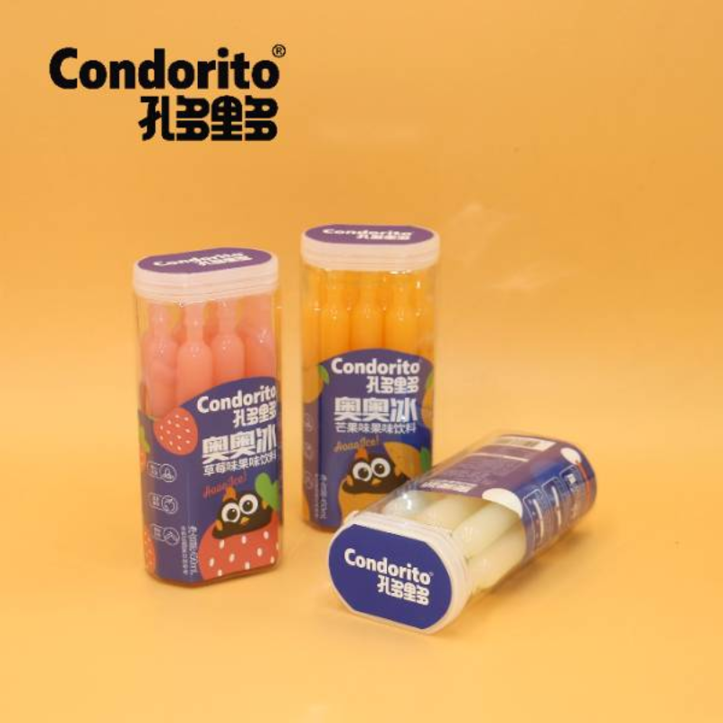 果味与酸奶饮料的结合,使口感浓郁香甜,卡通设计鲜艳出彩,别具一格。