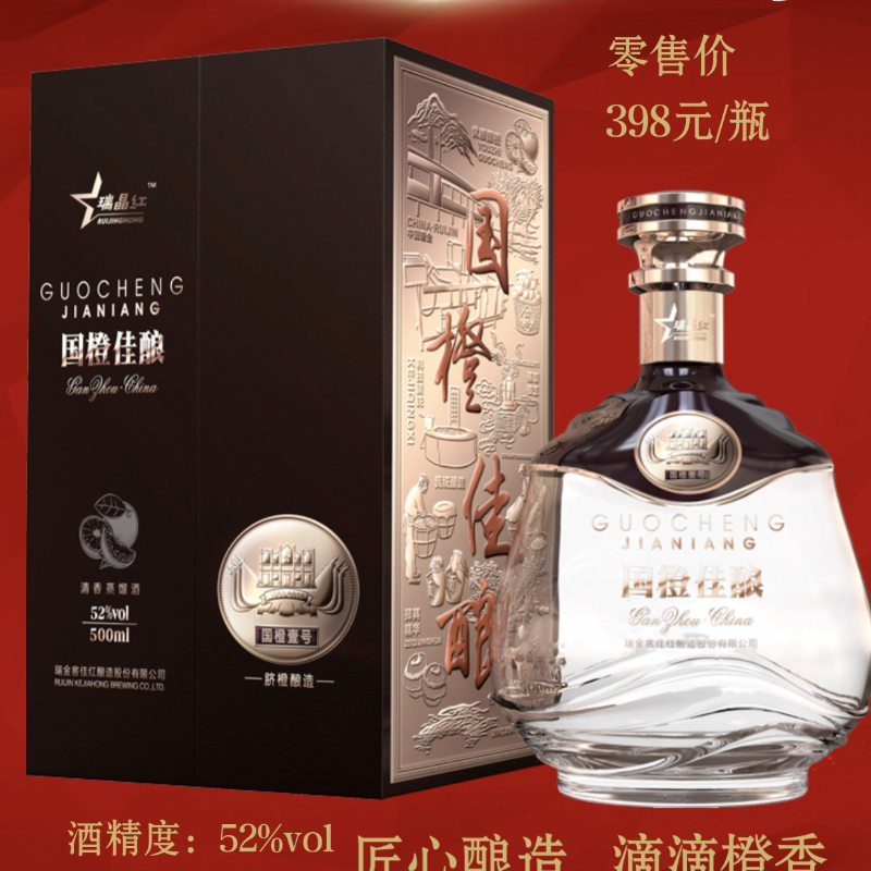 《国橙壹号》地道赣南脐橙酒,采赣江源之水,聚红色故都之灵气,精选赣南脐橙为原料,传承古老工艺,古方酒曲发酵,高温蒸馏,去除残物,芳香四溢,入口醇香而醇厚,回味悠长,厚道客家人,地道赣南脐橙酒。