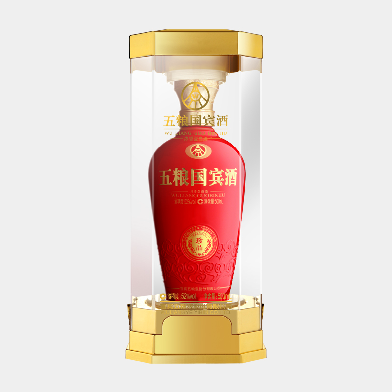 五粮国宾酒珍品自2010年上市,传承“国宾”**,“中国红”祥云瓶身与“帝王金”透明外盒浑然天成,生动演绎中国传统的华贵与喜庆。至今多次产品升级,成为国宾系列中的经典之作,是蝉联**的畅销单品。