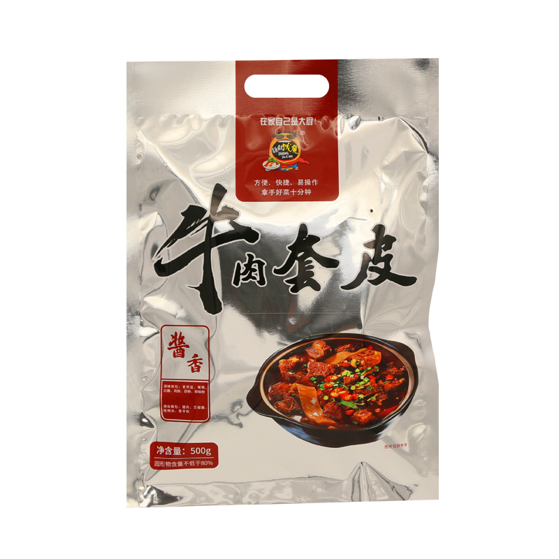 牛肉套皮是采用牛胸腹部,软皮层与精肉层之间的部位,牛肉套皮由研发人员与多名专业厨师,以多种食材香料,结合现代生产工艺,潜心研制,保证牛肉套皮的口感:软而不烂, 营养价值高,炖煮后口感酱香软糯不塞牙。搭配上酸菜色泽鲜亮,香味扑鼻,开胃去腻,老少咸宜。加热即食,多种味道随心选择,搭配丰富配料,方便、快捷、易操作、拿手好菜十分钟,在家体验餐厅级的美食体验。在家自己是大厨。