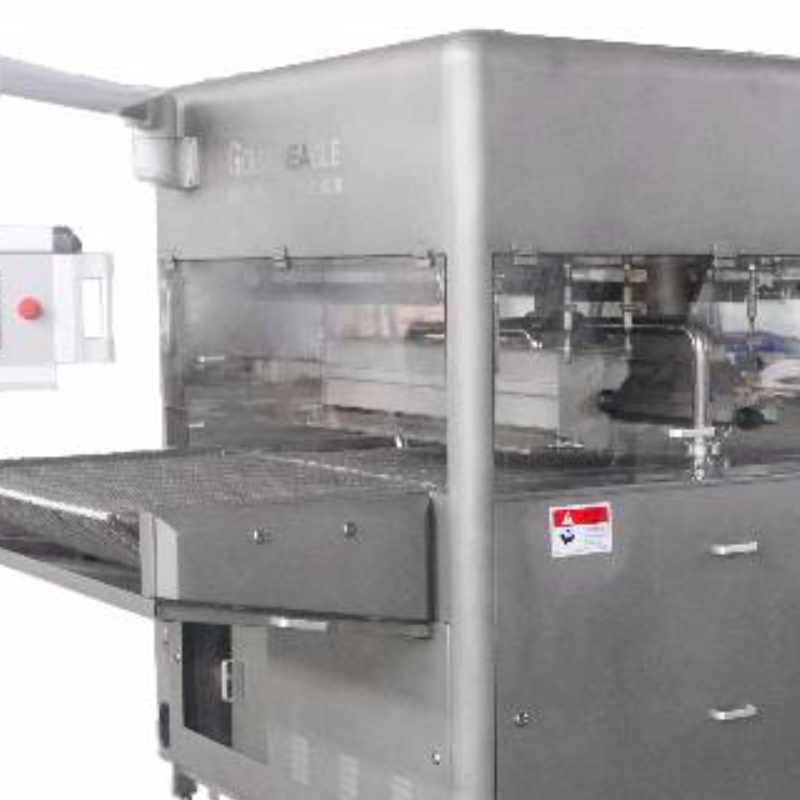本机是生产花色巧克力品种的专用设备,能在多种食品表面浸涂巧克力浆料,诸如威化、饼干、蛋卷、蛋黄派、膨化食品等,形成多种口味独特的巧克力制品