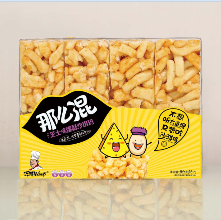 万琪365g*12盒沙琪玛有三个口味,分别是蛋酥坚果沙琪玛/黑糖坚果沙琪玛/芝士味蛋酥沙琪玛。沙琪玛的制作从原材料严格把控产品质量合理配比,提子干,南瓜籽仁,芝麻,鸡蛋,小麦粉,芝士等食材匠心烘焙,继承传统制作工艺,营养美味,酥软香甜。卡通漫画盒装是现代年轻人的佳选。每盒16个选用单个食品级透明包装,保证产品卫生健康。
