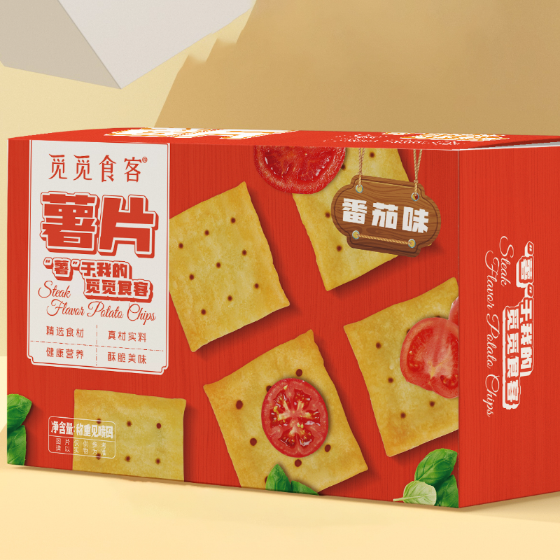觅食客番茄味薯片,品质好,口感棒,散称礼盒都销售。