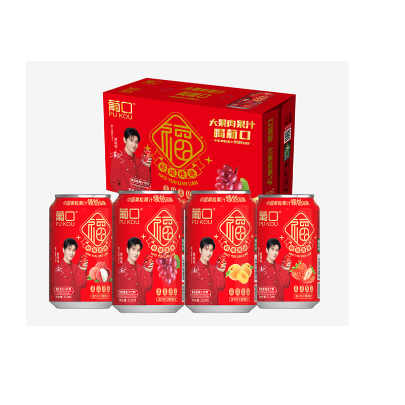 葡口大果肉果汁310ml宴席版聚焦各种喜庆场景,将“好运连连”延伸到消费者生活场景中,实现新婚大喜、满月大喜、开业大喜、乔迁大喜、庆功大喜、金榜题名、升学大喜、生日寿宴、答谢宴...家有喜事等多场景品牌文化渗透,让蕴含“好运连连”的美好祝福传递给更多消费者;同时也让葡口果汁走进消费者生活中的每一个值得庆祝的时刻,成为消费者人生中重要时刻的陪伴者与见证者。