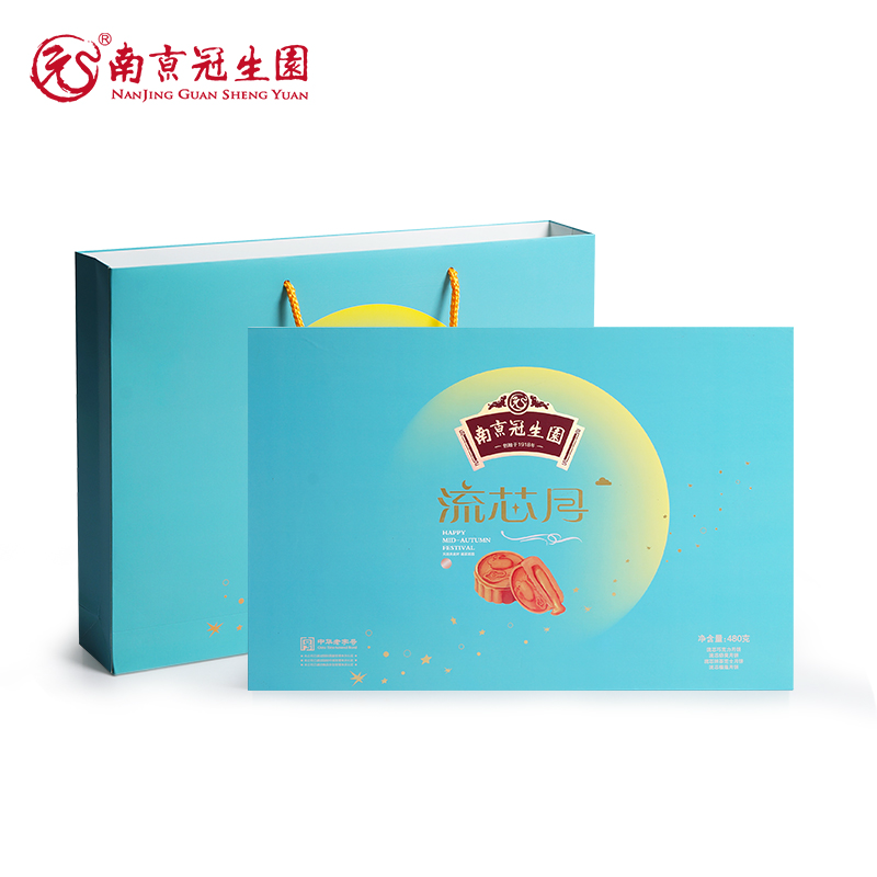 流心月饼作为近几年来在中秋月饼市场上的新晋网红宠儿,赢得了无数顾客的青睐喜爱。南京冠生园紧跟流行趋势,推出“流芯月”月饼礼盒,其中包含4款流心月饼:流心巧克力、流心奶黄、流心抹茶芝士、流心榴莲。