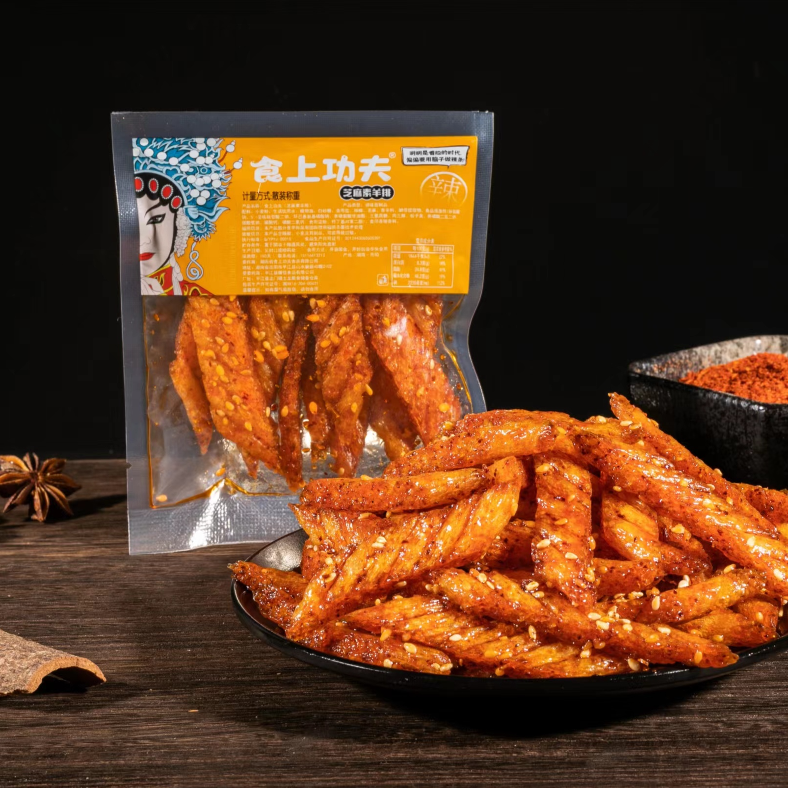 芝麻散称系列采用网红透明包装,产品有芝麻小辣棒、芝麻香辣丝、芝麻大面筋、芝麻素羊排等多元产品形态,产品在好吃的基础上同事满足年轻一代消费群体对口味的**追求!