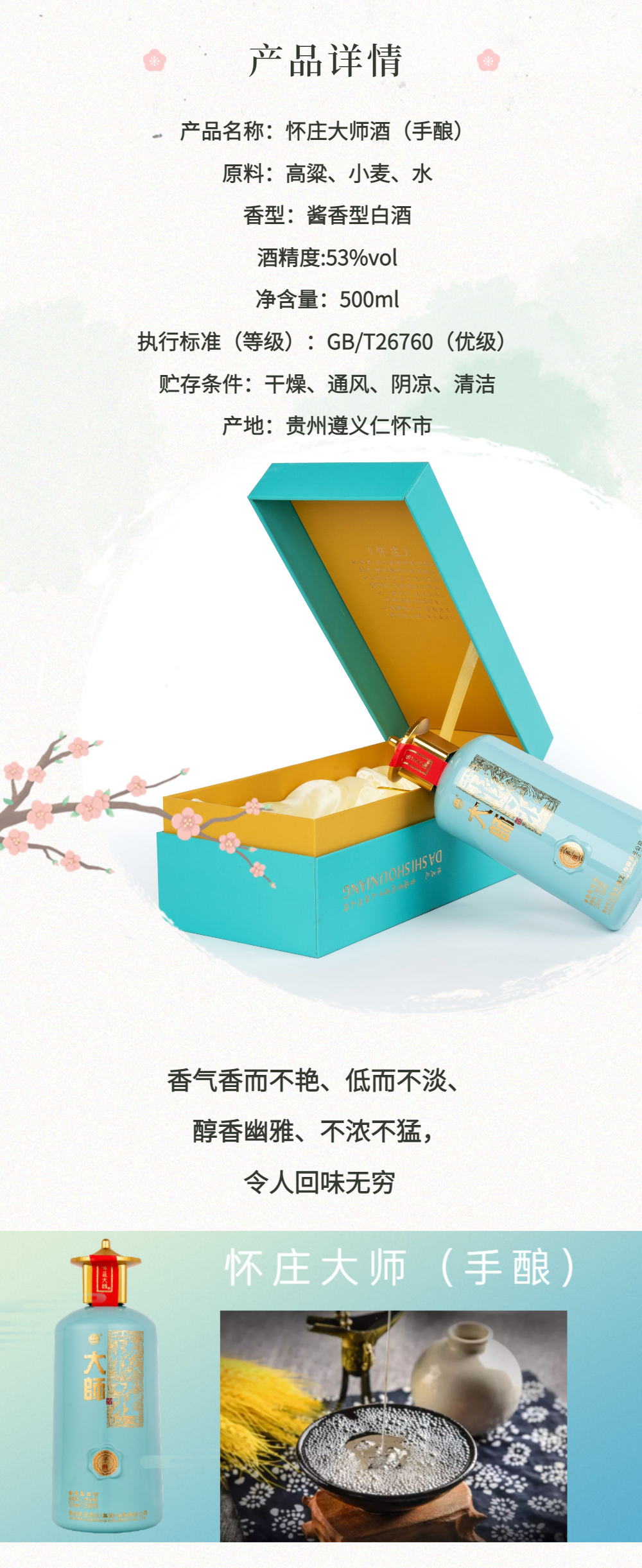 《怀庄大师(手酿)》秉承茅台古镇世代相传的酿酒工艺