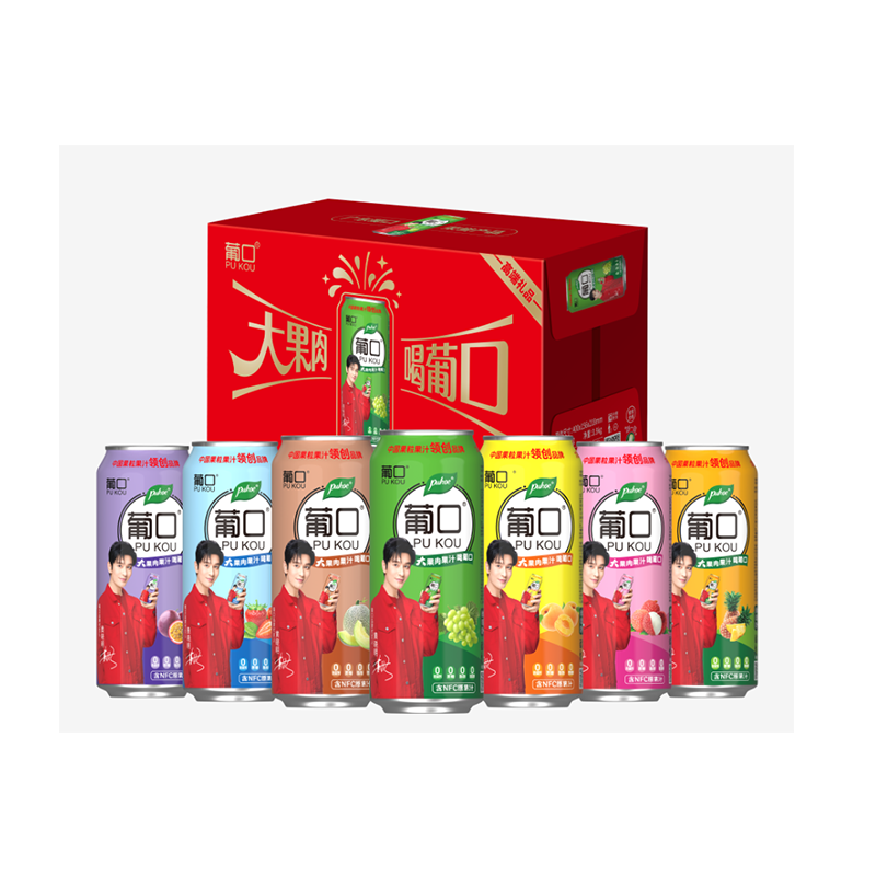 490ml高端礼盒,礼盒高端大气、质感非凡,包装设计以喜庆的“中国红”为主调,融入福字、 烟花、祥云等中国风元素,生动传达新春佳节人们奔赴团圆、共享欢聚时刻。在口味创新上,葡口推出葡萄味、草莓味、黄桃味、菠萝味、荔枝味、百香果味等系列产品,每一罐果汁都添加真实大果肉,一口果汁,一口果肉,超满足,这波高配置,无论是团圆或是送礼,**让你排面拉满。