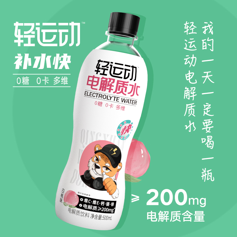 2. 轻运动补水快。电解质≥200mg,更快补充身体流失的水分和电解质,****。0糖0卡,富含多种营养元素(维C、维E、钙、镁、锌等),特别添加烟酰胺,不惧日晒。