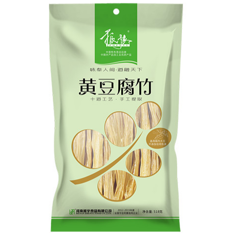 腐竹,又名豆腐皮、豆腐衣,是我国著名的民族特产食品之一,是一种滋味鲜美,风格独特,营养丰富,价格便宜,深受广大人民所喜爱的豆制食品。1、我公司主要原材料为黑豆、黄豆、青豆,均产自河北廊坊和黑龙江齐齐哈尔两个地方,和产地村委会、农场签订有采购合同,每批原材料均通过严格的感官和理化检测合格后方可入库,并有入库、领取、配料、投料等各项完整记录,从源头保证原材料品质**性。经过选料、泡豆、磨浆、煮浆、沉淀及过滤、成型等生产工艺制成。