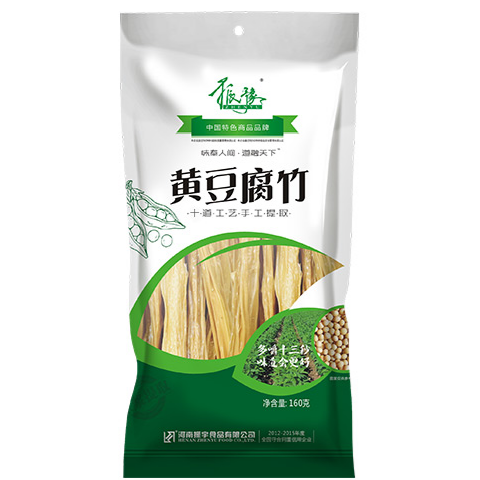 腐竹,又名豆腐皮、豆腐衣,是我国著名的民族特产食品之一,是一种滋味鲜美,风格独特,营养丰富,价格便宜,深受广大人民所喜爱的豆制食品。1、我公司主要原材料为黑豆、黄豆、青豆,均产自河北廊坊和黑龙江齐齐哈尔两个地方,和产地村委会、农场签订有采购合同,每批原材料均通过严格的感官和理化检测合格后方可入库,并有入库、领取、配料、投料等各项完整记录,从源头保证原材料品质**性。经过选料、泡豆、磨浆、煮浆、沉淀及过滤、成型等生产工艺制成。