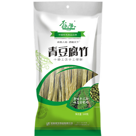 腐竹,又名豆腐皮、豆腐衣,是我国著名的民族特产食品之一,是一种滋味鲜美,风格独特,营养丰富,价格便宜,深受广大人民所喜爱的豆制食品。1、我公司主要原材料为黑豆、黄豆、青豆,均产自河北廊坊和黑龙江齐齐哈尔两个地方,和产地村委会、农场签订有采购合同,每批原材料均通过严格的感官和理化检测合格后方可入库,并有入库、领取、配料、投料等各项完整记录,从源头保证原材料品质**性。经过选料、泡豆、磨浆、煮浆、沉淀及过滤、成型等生产工艺制成。