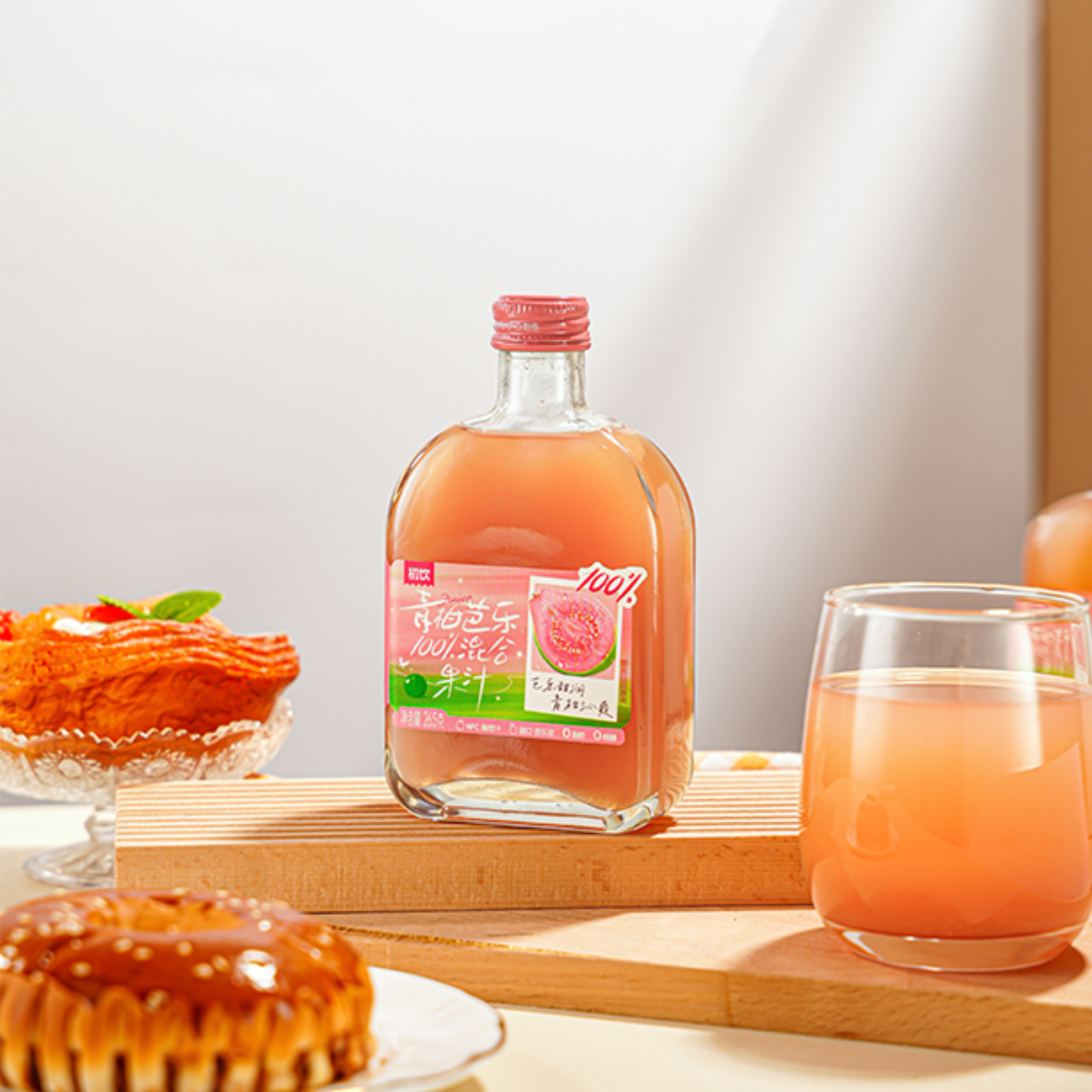 「青柑芭乐」:巴西帕鲁玛粉芭乐((南纬15°热带熟成,果肉绵密,甜润如蜜))× 越南老树青柑(老树品种,酸香清爽,富含维生素C),绵密甜润融合微酸沁爽,热带果园的沉浸式体验