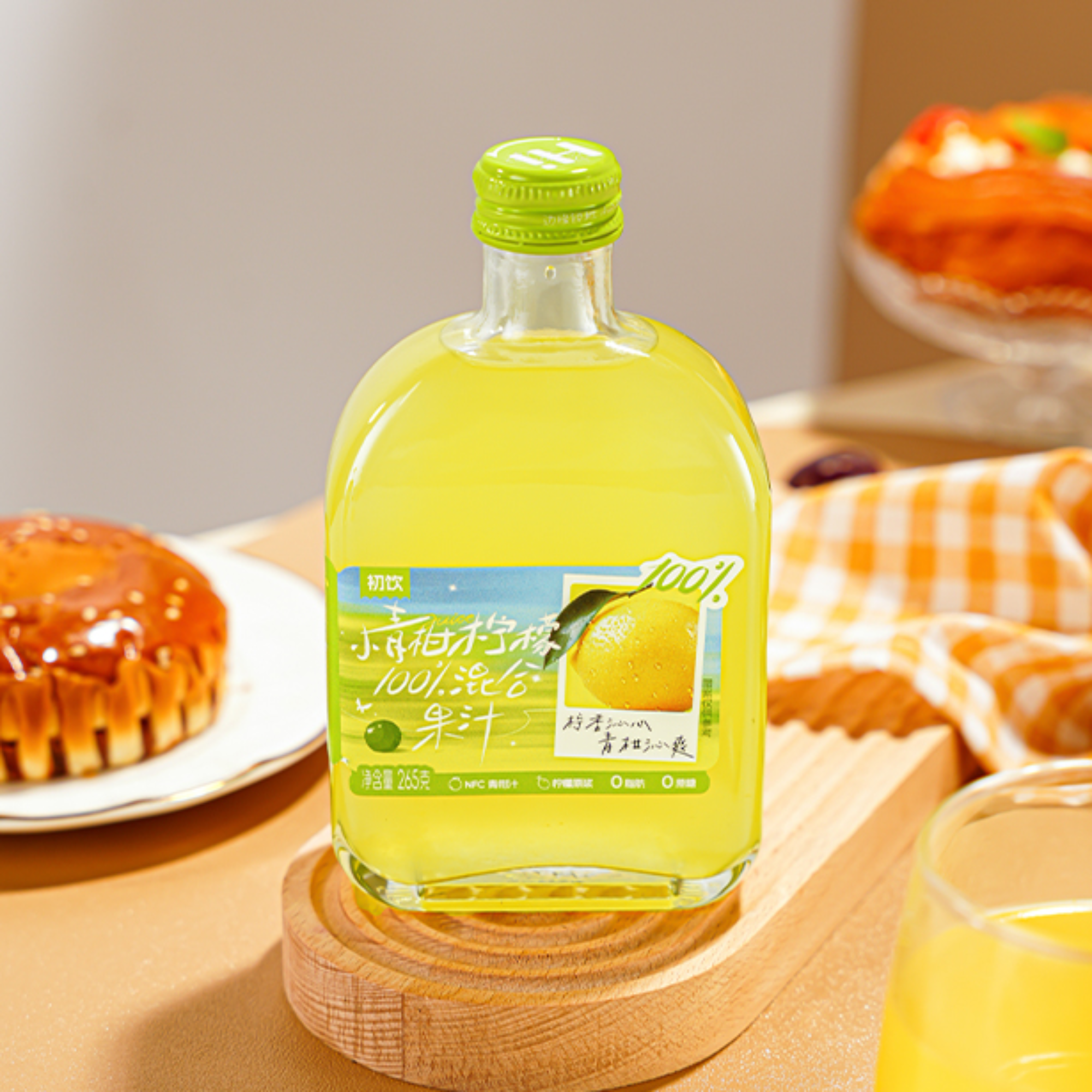 「小青柑柠檬汁」:越南老树青柑(果肉酸甜,含柚皮苷) × 四川尤克力柠檬(酸度6.0-7.5g/100ml,香气浓郁)青柑的微涩与柠檬的锐酸平衡,清爽醒神