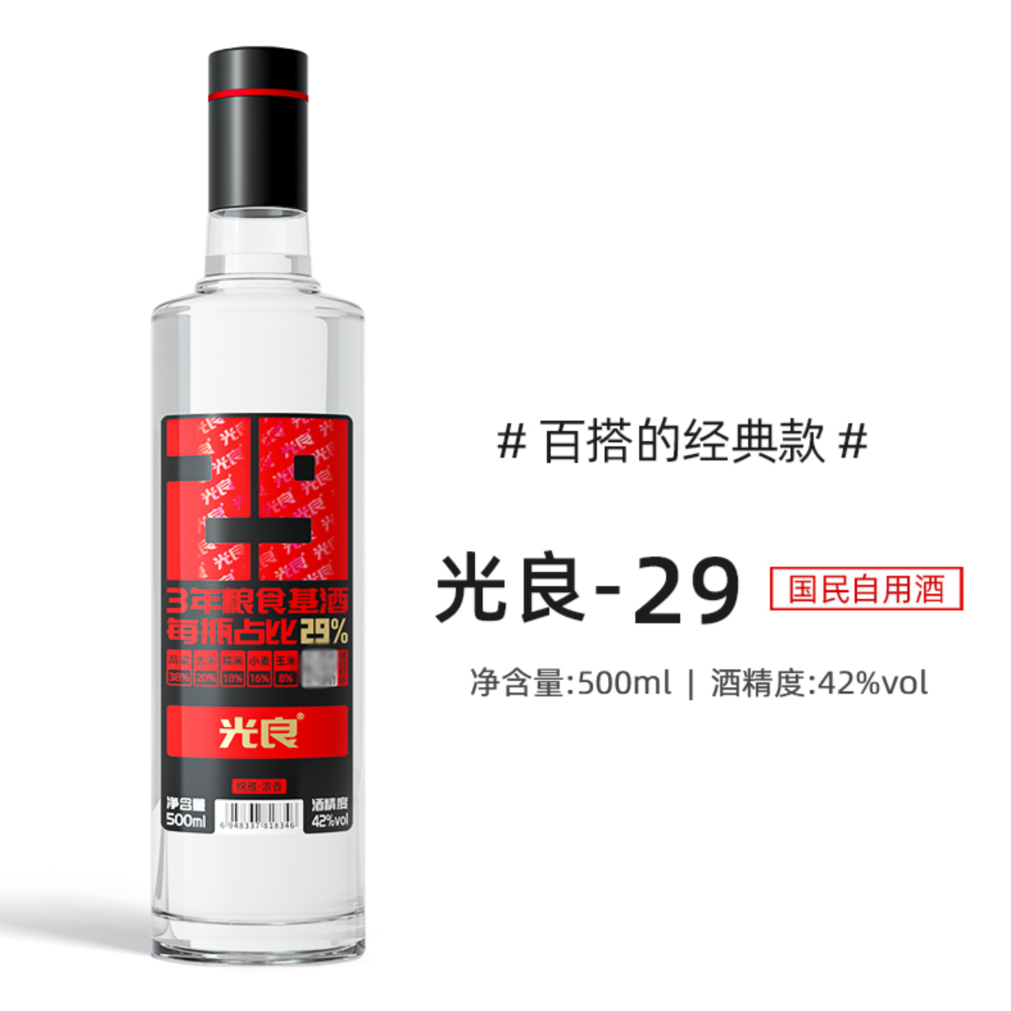 42度浓香型白酒,内含29%三年粮食基酒#百搭的经典款# 柔中带香,浓香适口纯粮原酒搭配山泉水口味不涩不腻