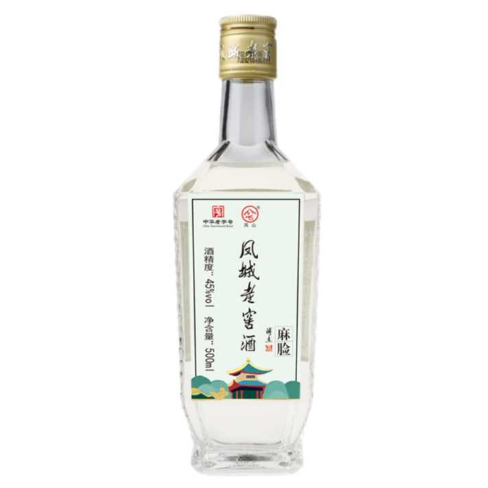 45度,500ml/瓶,酱香型,酒体微黄透明,入口绵纯,后味无穷,一杯品尽人生百味,凤城老窖两代人的记忆,方瓶文化的代表,也是我们老麻脸的延续