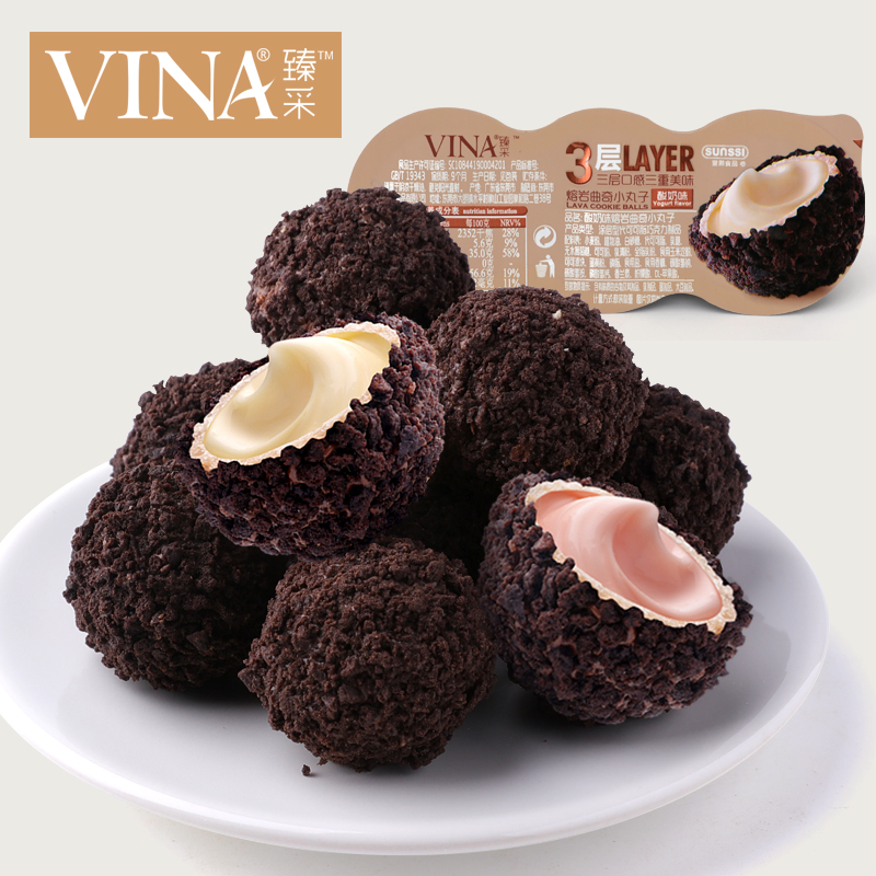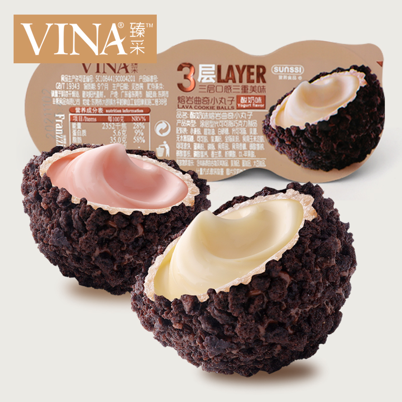 ① 三层美味,三重享受(“酥化曲奇粒+香脆威化+柔滑夹心,一口即享三重美味”); ② 酥脆外壳搭配幼滑夹心,一口爆浆,口口满足; ③ 创新单粒分格包装,十分级保护,单粒完美呈现;
