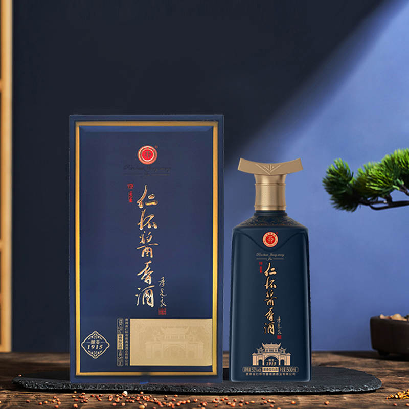 【仁怀酱酒-酿荟1915】采用掀背手工礼盒设计,深蓝色瓶身辅以金色帝王“平天冠盖”,彰显贵气,威而不露。柱形瓶身线条饱满有力,富有视觉张力,造型挺拔又不失柔美,既不繁复又讲究变化,整体造型沉稳大气,尽显魅力。