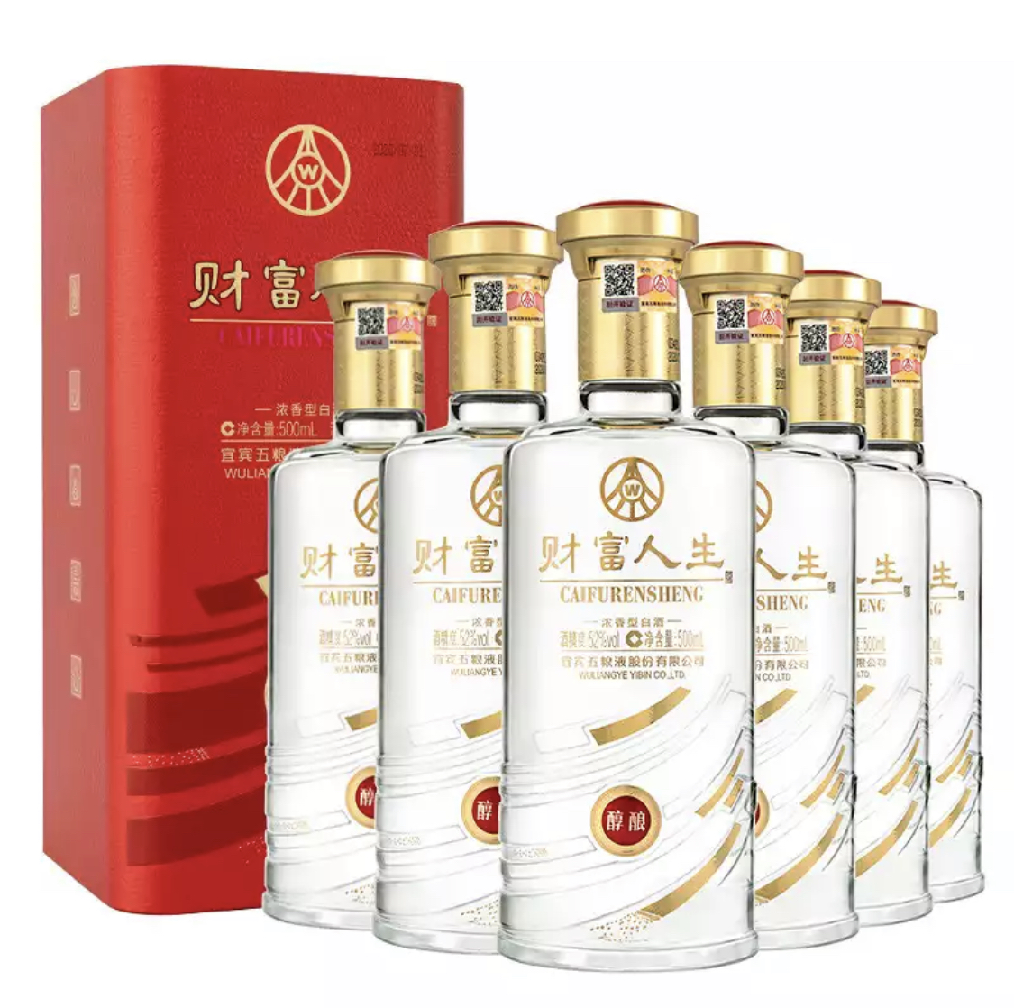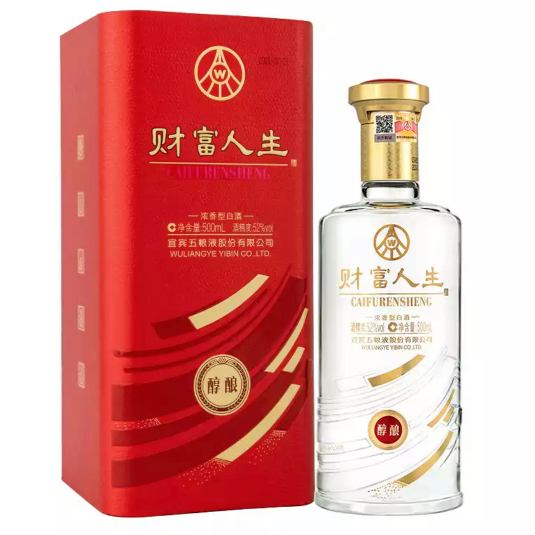财富人生系列酒为五粮液股份有限公司出品,是今年新上市品牌,财富人生醇酿外盒红色压纹仿皮半手工盒和红色的瓶子和象征财富之路的图案合而成的;是商务接待、婚宴、寿宴、家庭宴请、朋友聚会的**产品。