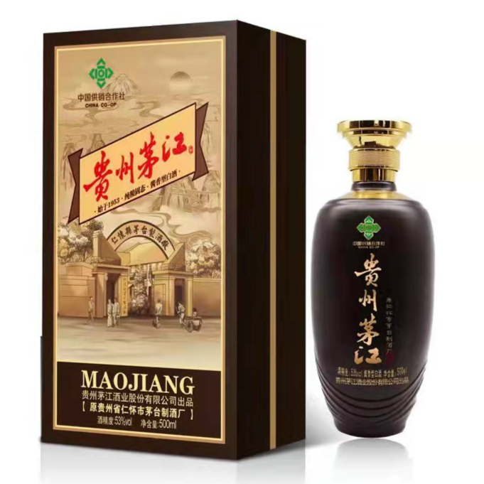 1953年,通过公私合营兼并茅台镇八家老酒坊创办贵州省仁怀县茅白制酒厂,是贵州省四级供销社参股的企业,也是当时茅台镇较早的酱香白酒酿酒企业之一。注册商标为“茅江”,以红军三渡赤水纪念碑为原型而设计。