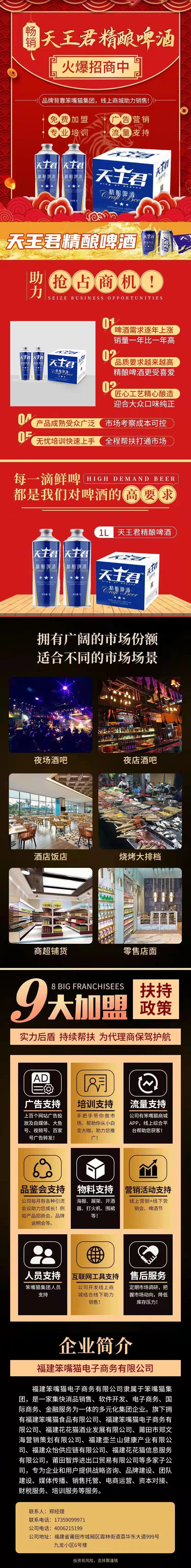 天王君啤酒是精酿啤酒(Craft Beer),有的也直接译为“手工啤酒”。可以酿出很多种口味,比如咖啡味、巧克力味、柠檬味、樱桃味等。不仅口味丰富可选择性广包装也十分高端,用来接待贵客也不失面子。兼顾宴请宾客、亲朋聚会。