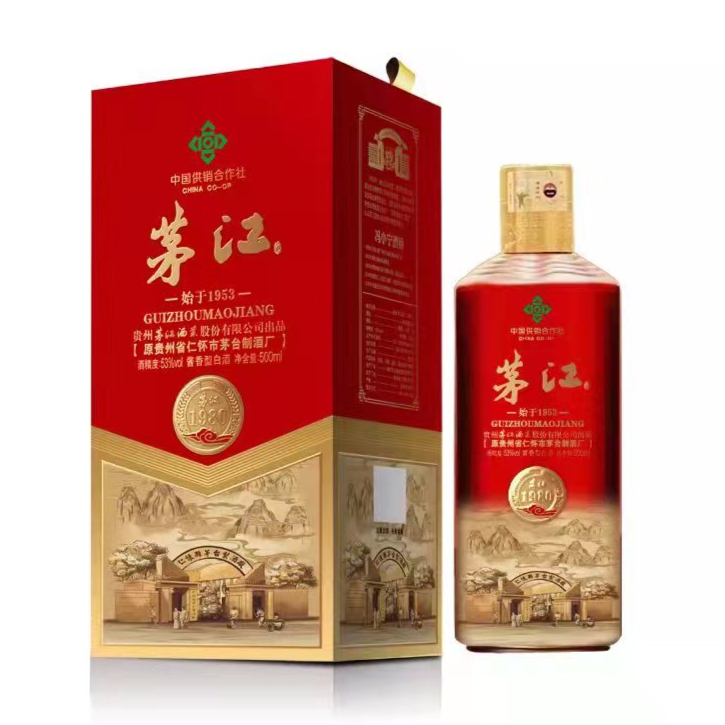 1953年,通过公私合营兼并茅台镇八家老酒坊创办贵州省仁怀县茅白制酒厂,是贵州省四级供销社参股的企业,也是当时茅台镇较早的酱香白酒酿酒企业之一。注册商标为“茅江”,以红军三渡赤水纪念碑为原型而设计。