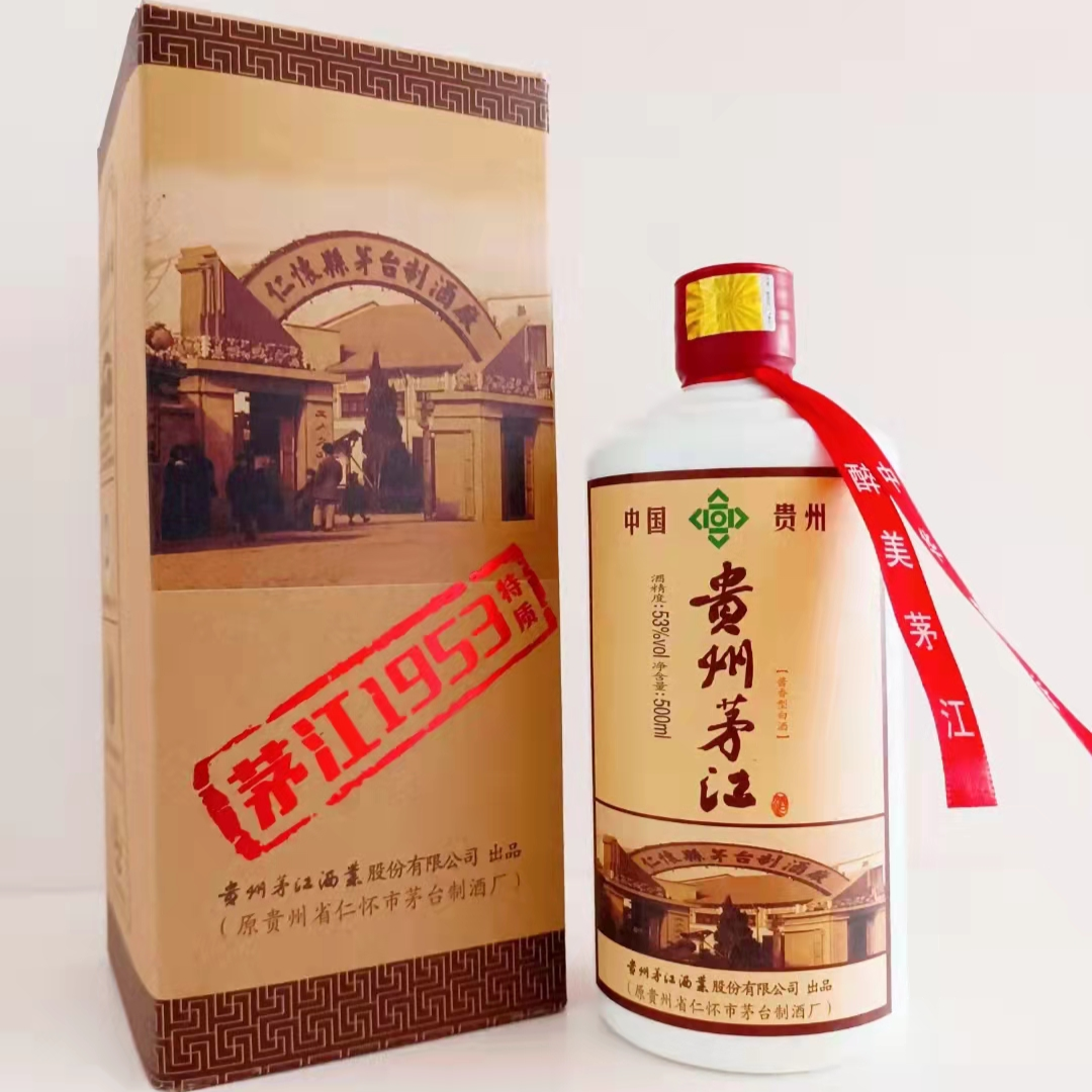 1953年,通过公私合营兼并茅台镇八家老酒坊创办贵州省仁怀县茅白制酒厂,是贵州省四级供销社参股的企业,也是当时茅台镇较早的酱香白酒酿酒企业之一。注册商标为“茅江”,以红军三渡赤水纪念碑为原型而设计。