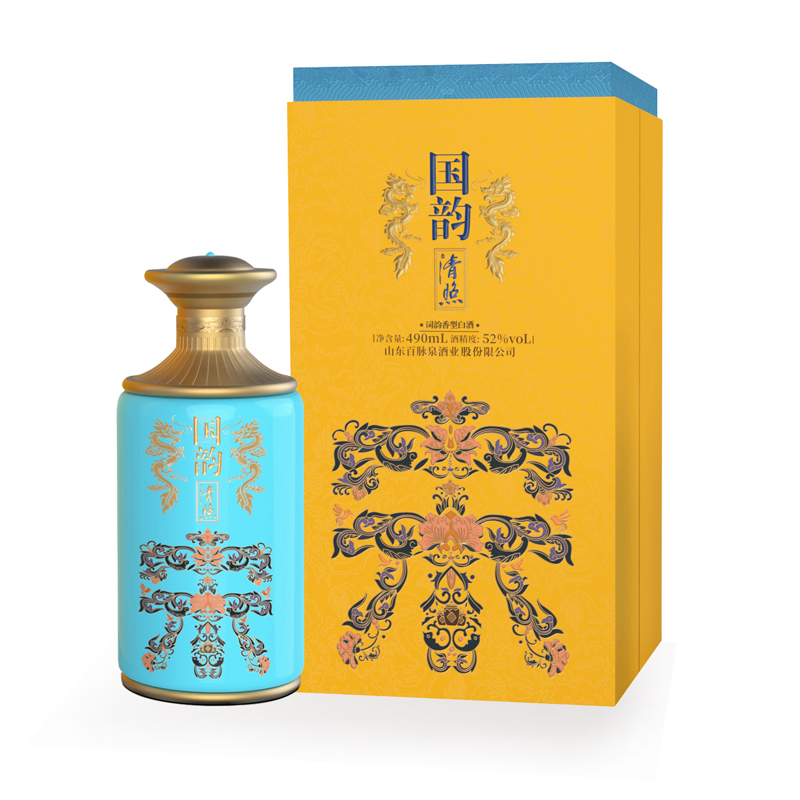 章丘是宋代词作家李清照的故乡,孕生于清照文化的“词韵”系列精酿——清照•国词、清照•国韵,是百脉泉酒业文化名酒典范,进军高端的代表产品和“清照”品牌升级的战略产品。原料上采用五粮酿造,在用水上采用深泉水系,而独特的酿酒工艺,赋予了清照“词韵”系列陈香和醇厚的元素。“颜值高”。“清照•国词”瓶身借鉴了传统卷轴型,整体上文化气息浓厚;“清照•国韵”则用皇家黄色和珐琅彩瓶身,凸显了皇家和宋朝的文化内涵。纯粮酿造,固态发酵,陈香舒适、醇厚悠长。