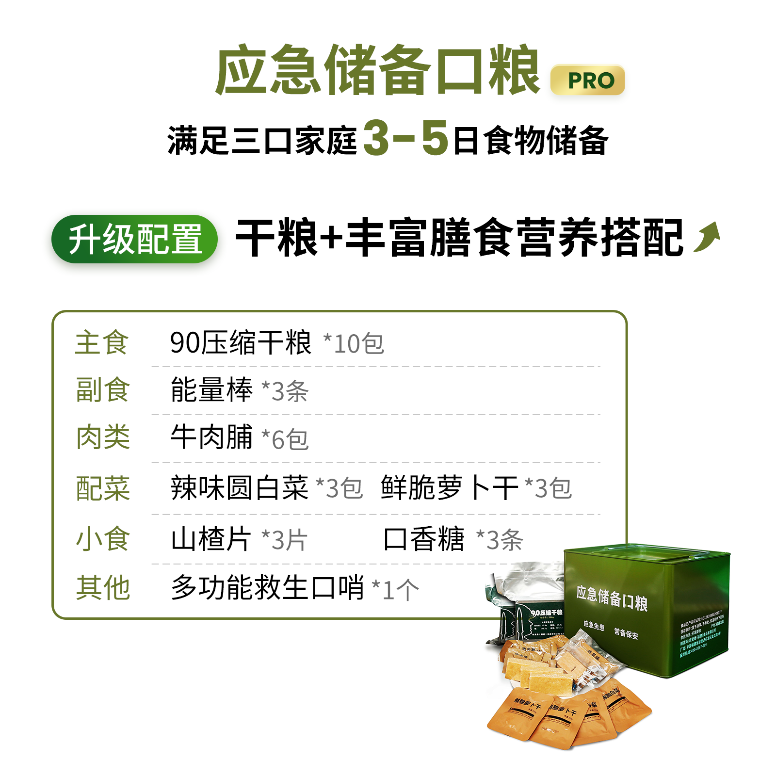 【组合多样】90压缩干粮*10包+肉脯*6包+菜包*6包+能量棒*3条+山楂片*3包+口香糖*3条+多功能口哨