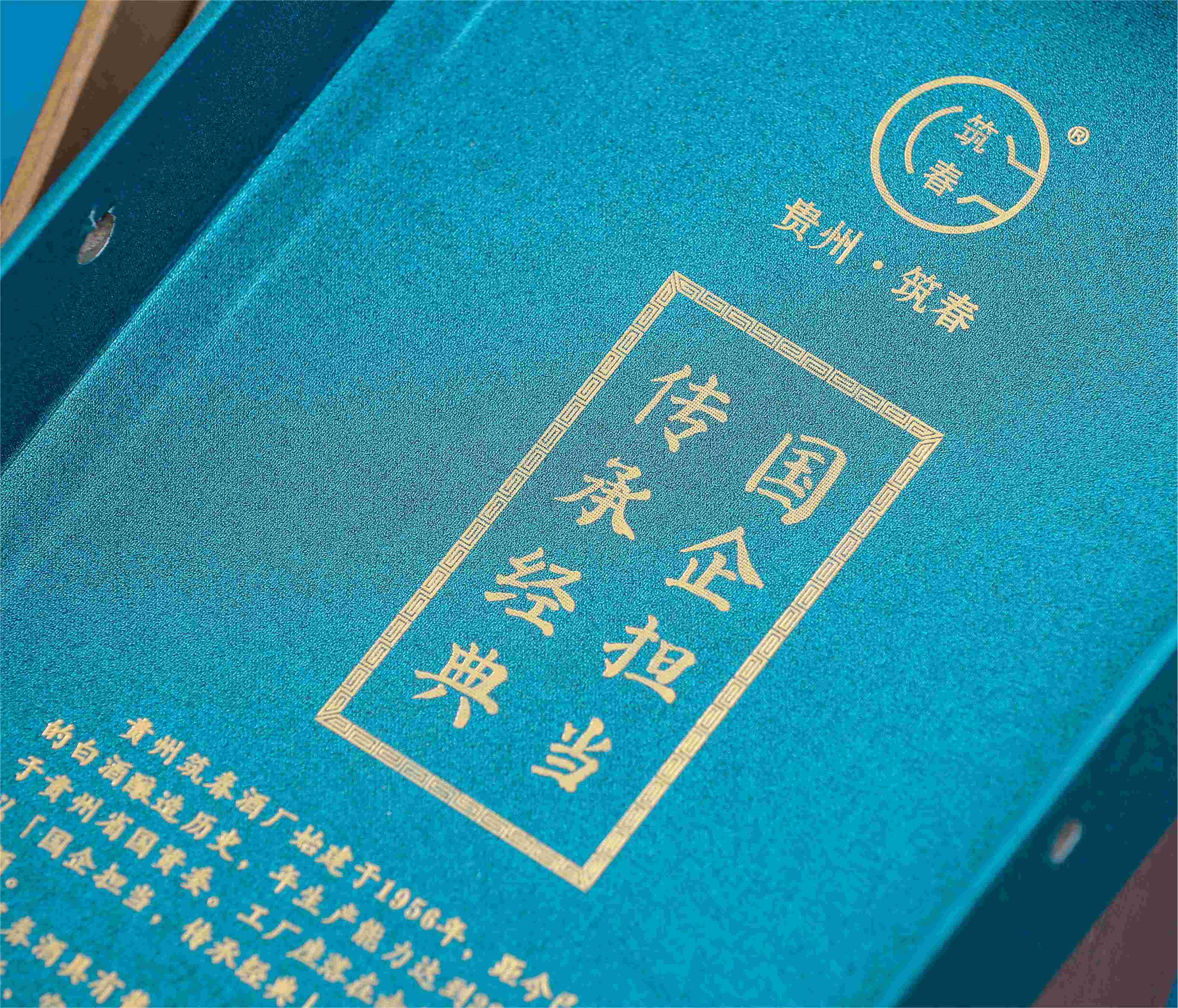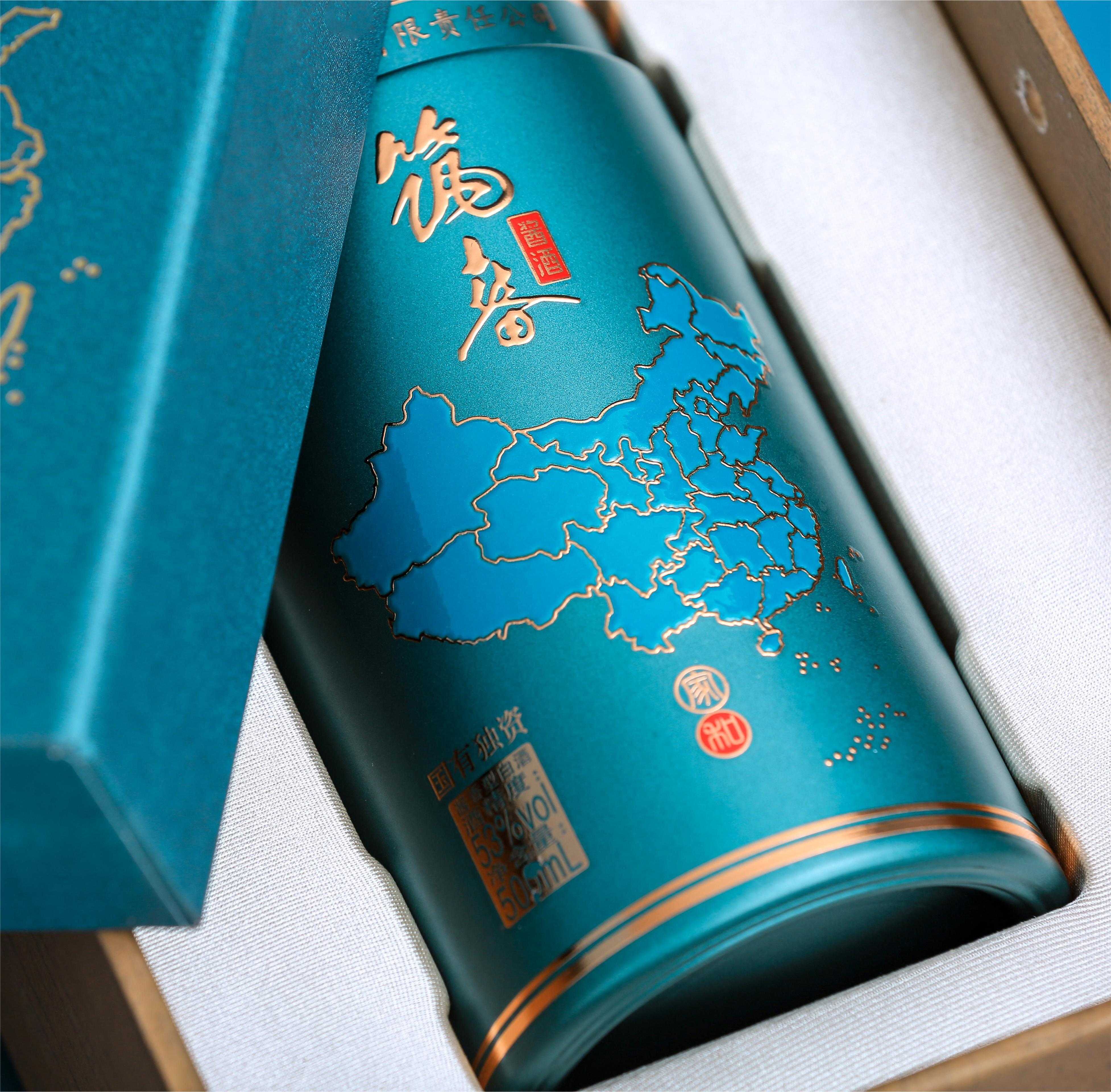 筑春家和版以“家国天下、和而不同”为产品理念,青绿天盖、年轮纹地盖包装,沉稳大气,铜狮纽扣开启,瓶身古铜烫花,层峦叠现,配单盒手提袋,轻奢时尚。