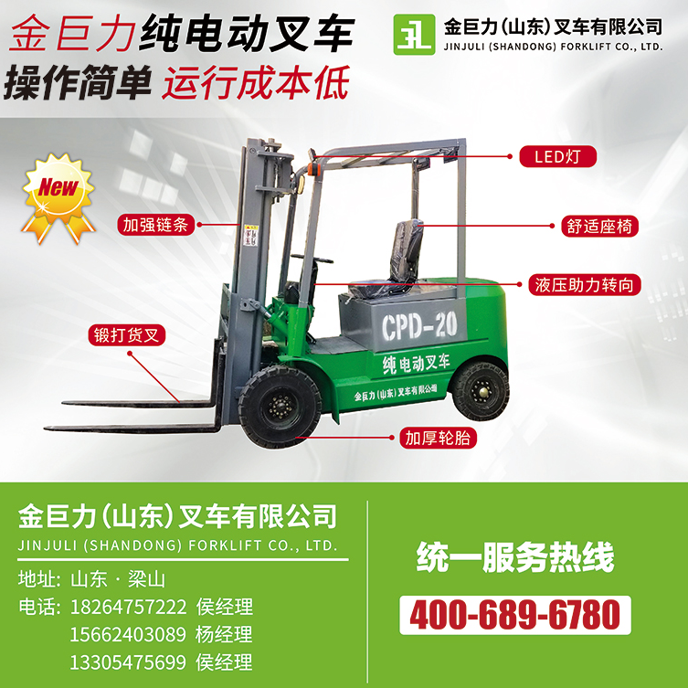 金巨力(山东)叉车有限公司是山东省内生产技术较先进的新能源电动叉车生产厂家,并且完善的售后服务能帮助客户快速解决各方面的问题,是一家较值得客户信赖的新能源电动叉车厂家之一;目前,本公司主要产品有各种规格(可以按照实际需求加工定做,直到您满意为止)的用于港口、车站、机场、货场、工厂车间、仓库、流通中心和配送中心等,在船舱、车厢和集装箱内进行托盘货物的装卸、搬运作业,是托盘运输、集装箱运输中必不可少的设备及配件,并以过硬的产品质量及合理的产品价格,多年来与客户建立了良好的合作关系,并受到市场客户的良好赞誉。