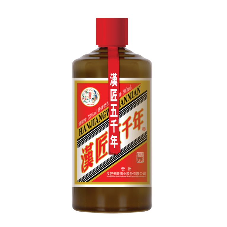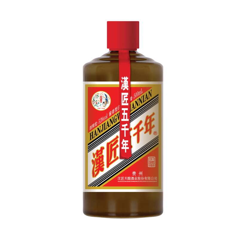 产品介绍: 漢匠五千年产于中国贵州省仁怀市茅台镇,以本地优质高粱、小麦、水为原料。利用得天独后的自然环境,采用科学独特的传统工艺精心酿制而成,具有清亮透明、酱香突出、香气优雅、空杯留香持久、酒体醇厚、丰满协调、回味悠长的典型风格。