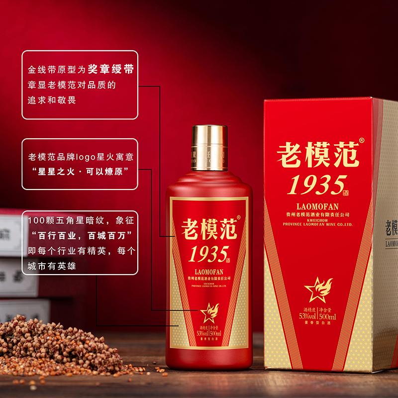 盒子上的线带引用奖章绶带的一种变形,巧妙的融合了模范的品牌调性,同时符合中国传统古典对称美学,使之成为”老模范“品牌独有的超级符号