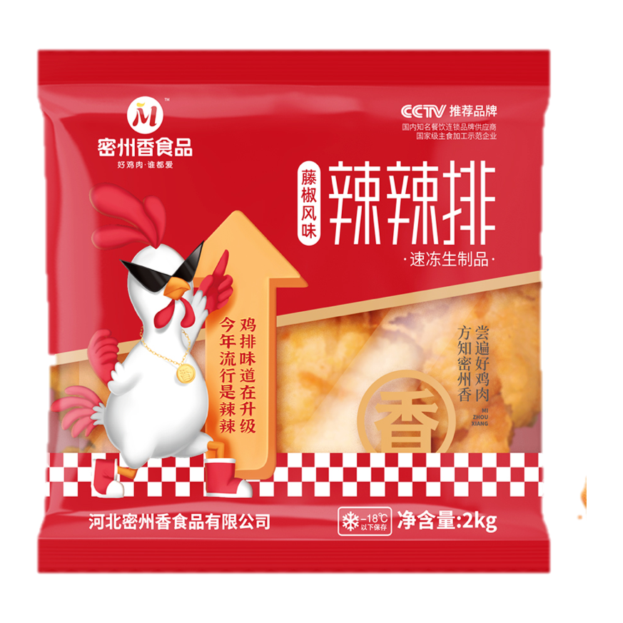 延续密州香特有的裹粉技术,炸后不掉粉;这也是某新鸡排同款粉料,酥脆更持久。