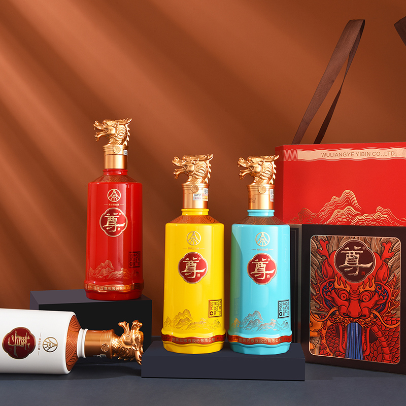 五粮凝甘露,杯酒藏神韵;萃天地精华,吟千古绝唱。在中国的传统文化中,“龙”是自然受到崇拜和喜爱的精神象征。龙之图案,寓意尊崇显赫。龙的出没必有祥瑞,亦寓意会有贵人提携相助,迎来吉星护佑,财气一路顺畅,事业**高涨!尊酒-套酒4支组合成套装寓意:分别寓意:福、禄傍身,富、贵加乘,福禄富贵双全。产品采用明朗艳丽的色彩,洋溢着浓郁的现代色彩,吉庆又富贵,而这种在视觉上形成强烈冲击力的表达方式,完美诠释出五粮浓香卓尔不凡的文化内涵;整套产品大胆创新,设计独特,表现生动,通过精心的插画设计,不露自威,使其从视觉上更具大气尊崇、更富有艺术性。4支箱式礼盒装寓意吉祥和顺,将传统祝福寓意蕴含其间,意将福泽散播五湖四海,是对传统文化的深刻表达,反映了对美好未来的憧憬,对吉祥幸福向往的美好愿望。五粮品质,尊享人生。