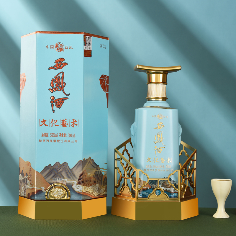 瓶身插画便是一幅跨越两千多年,由西汉时期的张骞出使西域而开辟的以长安为起点,经关中平原、河西走廊、塔里木盆地,到中亚、西亚地区,并联结地中海各国的陆上通道的“古丝路”。在这条逾7000公里的长路上,跨越时空,以长卷形式串联了西安大雁塔、罗马竞技场,雅典帕特农神庙、埃及金字塔等沿线著名古建筑,形成了一个完整的丝路图鉴,既有时代内涵,亦有大国风范,文创价值赋予产品价值,不仅是穿越时空的隔空对话,也是强盛文明的象征。公元前221年,秦始皇横扫六合,一统中国,在富庶的关中平原咸阳称帝,这款产品外盒便用到了一个六边形设计,并且与之匹配了金色帝王“冕冠”,大气尊崇,威而不露。桶形瓶身线条饱满有力,富有视觉张力,造型挺拔又不失柔美,既不繁复又讲究变化。瓶身两侧的图案是浮雕象面便是“太平有象”,在中国传统文化里,“象”与“祥”字谐音,被赋予了很多吉祥的寓意。古人云:“太平有象”、“吉象送财”和“出将入相”。同时,大象也是长寿的象征,也寓意着健康长寿。
