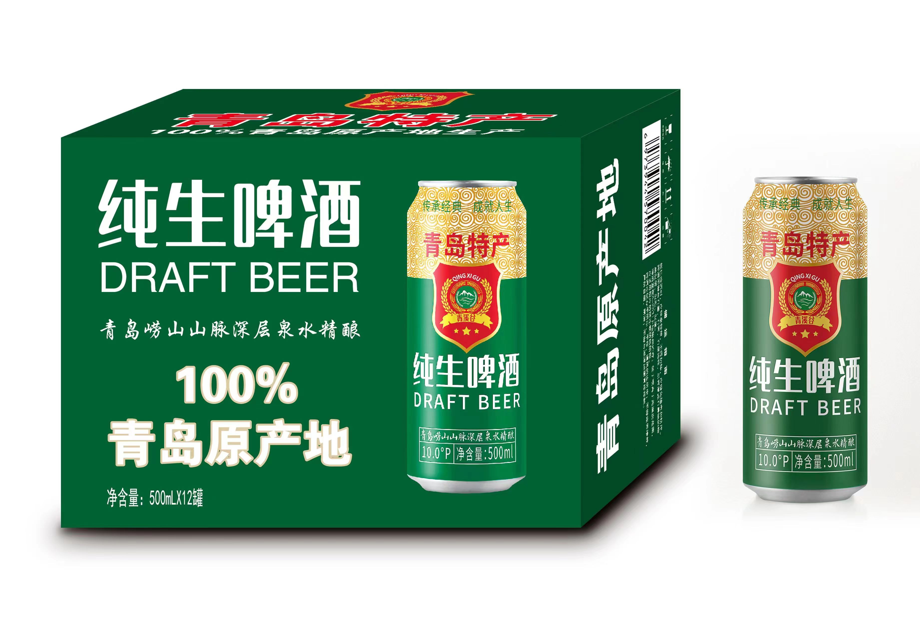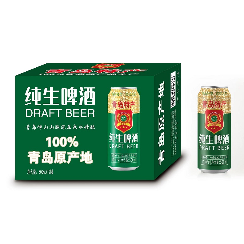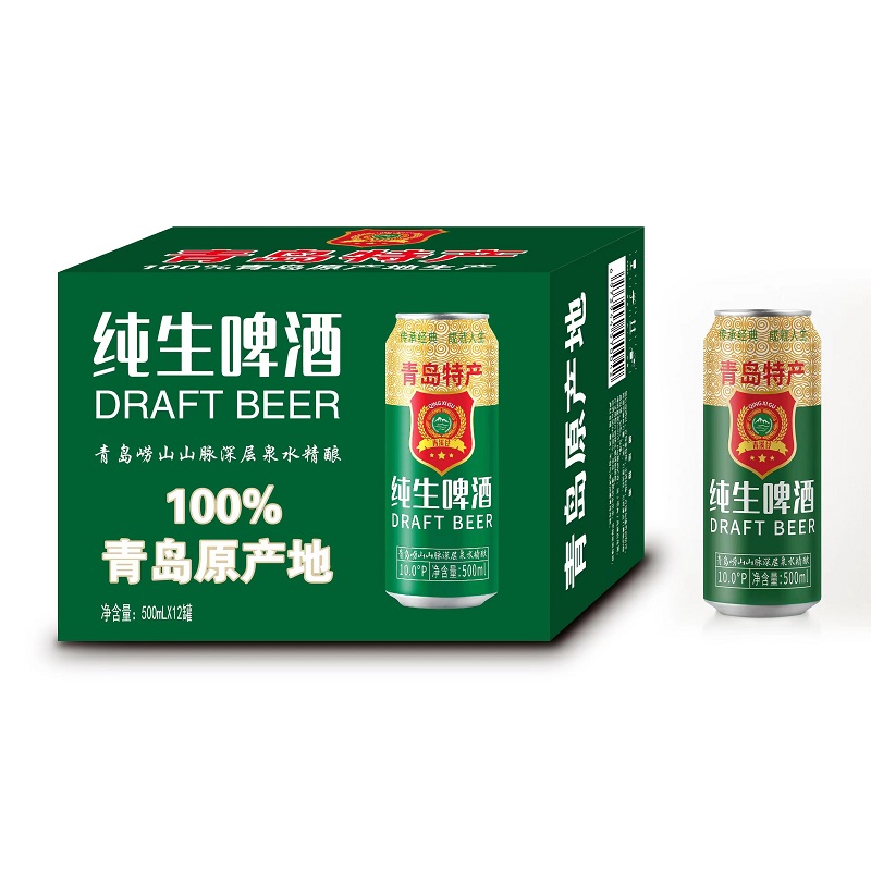 啤酒原料包括崂山山脉泉水和进口澳麦、进口酵母、进口啤酒花。原麦汁浓度 10°P,酒精度3.3%vol,500ml*12听,质量等级为国标优级,保质期12个月