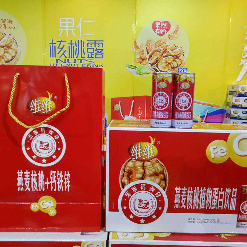 维维核桃钙铁锌,15罐礼盒和20罐包装每罐240ml。纯核桃加钙铁锌微量元素,包装大气,钙铁锌卖点明确。
