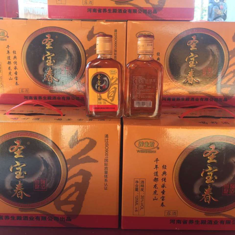 乾隆皇帝久在脂粉堆里打滚儿,时间长了,难念厌倦了****。于是起心动念,想领略一番南朝金粉的魅力,于是数度来到江南,名义上是泽被黎庶,访查民情,实际上是心有不足,得陇望蜀。却说乾隆皇帝有一日来到道教祖庭信州龙虎山, 但见千峰竞秀,万壑争流。瀑布斜飞,藤萝倒挂。虎啸时风生谷口,猿啼时月坠山腰。恰似青黛染成千块玉,碧纱笼罩万堆烟。那乾隆皇帝正沉醉于丹山碧水间,忽闻远山中间传出高亢洪亮而又绕梁三日的樵歌,其辞曰:君不见蓬莱寻仙秦始皇,命丧江山亦复亡;君不见开疆拓土有汉武,灰飞烟灭一抔土。何如泛舟湖海游,我亦飘然范大夫;斗笠斧樵青山上,友鹿侣猴乐不枯。管什么王侯难免飞鸟尽,管什么四面楚歌霸王输。乾隆皇帝听罢多时,不由得连连赞叹,真的是好所在,真的是好老儿。朕拥有四海,珠宝充栋,佳丽无数,却不免闷闷不乐。何等样的山野村夫如此雅致,可令其前来,朕要一看究竟。不久见一老儿跪倒尘埃。口称小老儿拜见吾皇陛下。愿陛下百福骈臻,千祥云集,四海升平,万寿无疆。乾隆皇帝见面前老儿鹤发童颜,精神矍铄,双目炯炯,举止若壮,神彩风扬。乾隆皇帝问老儿姓氏名谁,境况如何?老儿答道:草民姓周,名善旺,字连春,年方138岁,因为小老儿年逾百岁,因此周围山民尊称为周老连,草民有子女46人,长子119岁,幼儿年方13岁。乾隆皇帝听罢,不由得十分好奇,仔细询问其中的奥秘,老儿跪奏:草民采龙虎山百花之精、万药之灵,自酿美酒,自斟自饮,颇有返老还童之奇效。周老连呈献乾隆饮用,数日后乾隆皇帝便感觉体力充沛、精神焕发、全身轻松、气血舒畅,盛赞好酒!特为该酒赐名“圣宝春”,封周老连为长寿翁。正是因为乾隆皇帝坚持饮用圣宝春酒才成为中国历史上*长寿皇帝。著名经济学家温元凯教授曾经对圣宝春称赞诠释道:至高无上乃为圣,神圣的宝贝像春天一样健康!